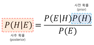 위의 베이즈 정리는 인공지능 분야에서 필수인 정리입니다. 이 정리는 사건이 일어나기 전의 확률인 사전 확률과 사건이 일어난 이후 확률인 사후 확률의 관계를 나타내는 공식입니다.