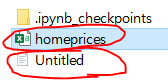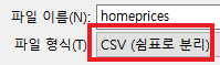 그러면 간단한 예시를 통해 파이썬 csv파일을 불러오는 방법을 알아보도록 하겠습니다. 우선 저는 아래와 같이 homeprices라는 csv파일과 파이썬 파일을 같은 폴더에 저장하였습니다.