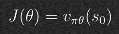 누적 보상은 최적화하고자 하는 목표함수가 되며 최적화를 하게 되는 변수는 인공신경망 가중치 theta입니다. 이를 식으로 나타내면 아래와 같습니다.