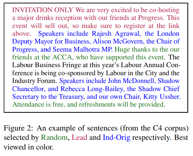 - Principal: 선택한 gap-sentence와 나머지 다른 문장들 사이의 ROUGE1-F1 score를 통해 상위 점수 순으로 선택. 선택 기준은 다음과 같음