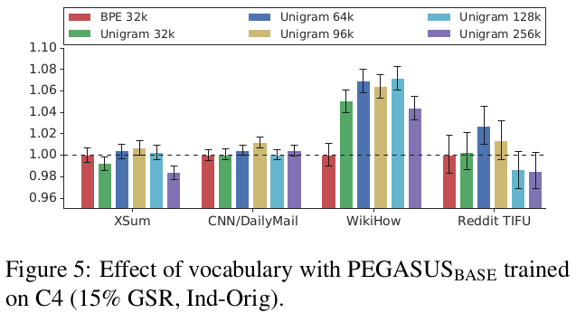 - tokenization 방법인 Byte-pair-encoding(BPE)와 SentencePiece Unigram(Unigram) algorithm 에 따른 성능 비교