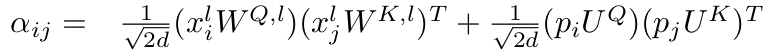 - 앞서 설명했던 absolute positional encoding을 전개하면 다음과 같이 됨
