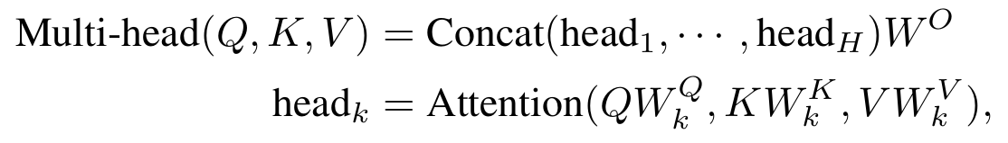 - "Multi-head Attention"은 이 논문에서 설명하는 식이고, "Attention formulation"는 논문 Attention is all you need 에서 설명하는 Attention의 구조 식 (이 둘을 비교하면서 보면 이해가 쉬움)