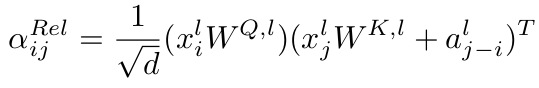 - 단어의 절대적인 위치대신 단어간 상대적인 위치 "a_(j-i)"를 Key에 더해줌