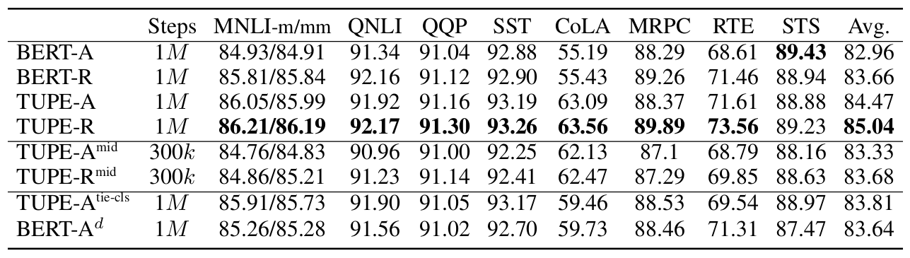 - TUPE-A : absolute positional encoding TUPE