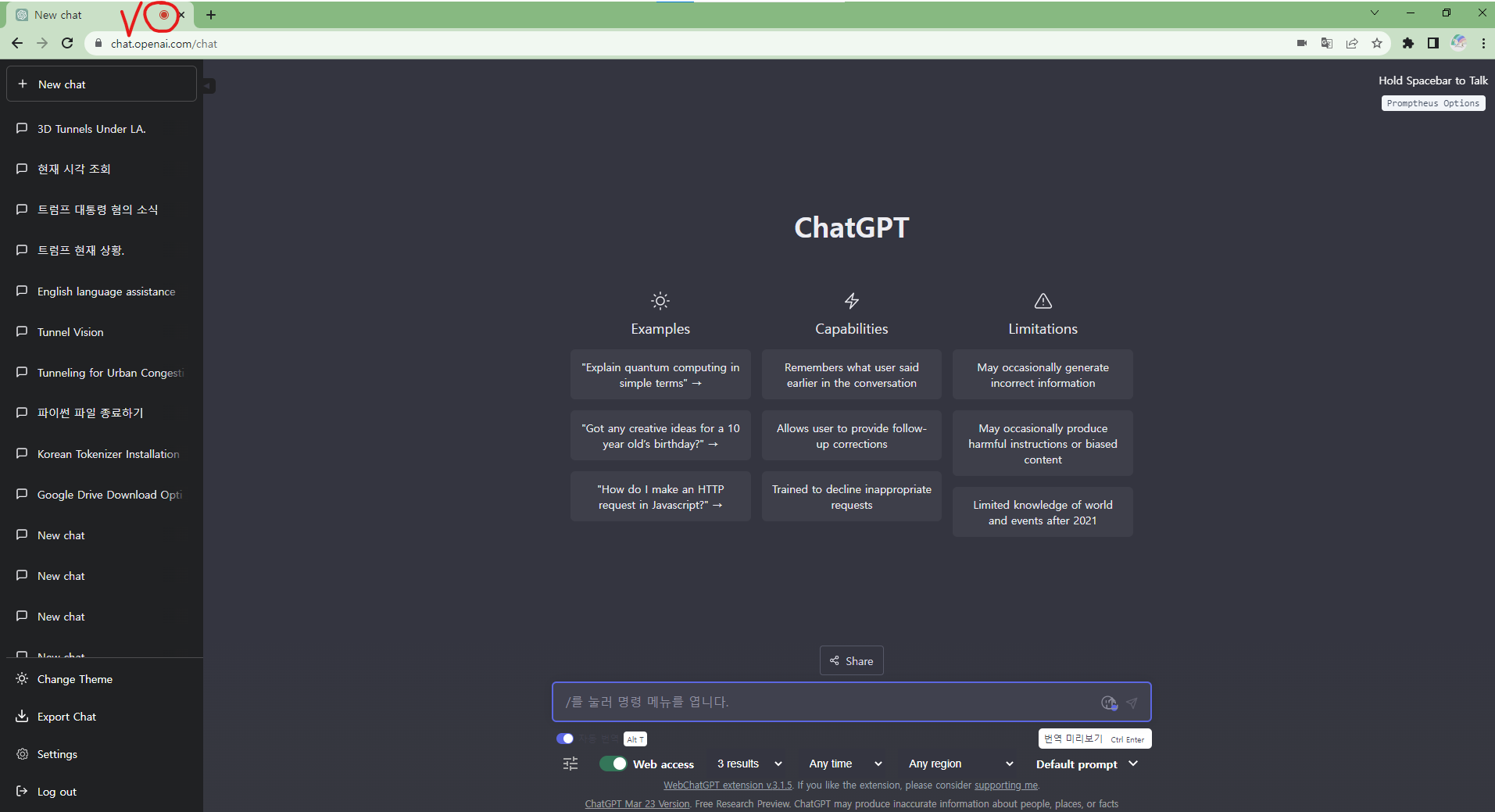 ChatGPT의 성능이 좋은것은 자명한 사실이지만 하나 큰 문제점을 가지고 있습니다. 바로 인터넷에 연결이 되어있지 않아 최신 정보들을 모른다는 것입니다. 예를 들어 지금 현재 우리나라의 대통령이 누구냐고 물어보면 이에 대한 정확한 답을 하지 못합니다. 이를 해결해 현재 웹과 연결해주는 확장프로그램이 'WebChatGPT'입니다.