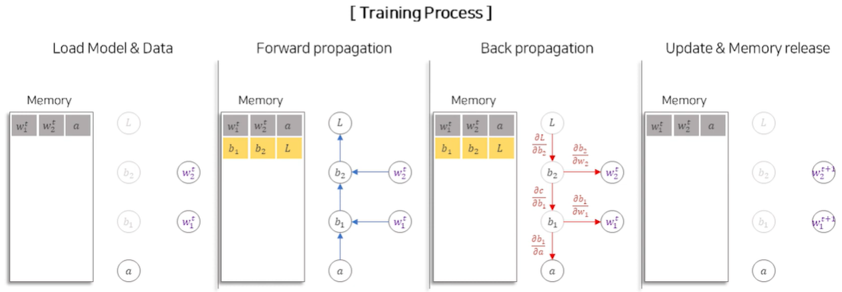 - 원래의 NN 모델에서 연산의 중간 결과물(b1, b2)들을 연전파(back propagation) 전까지 따로 저장해야 함
