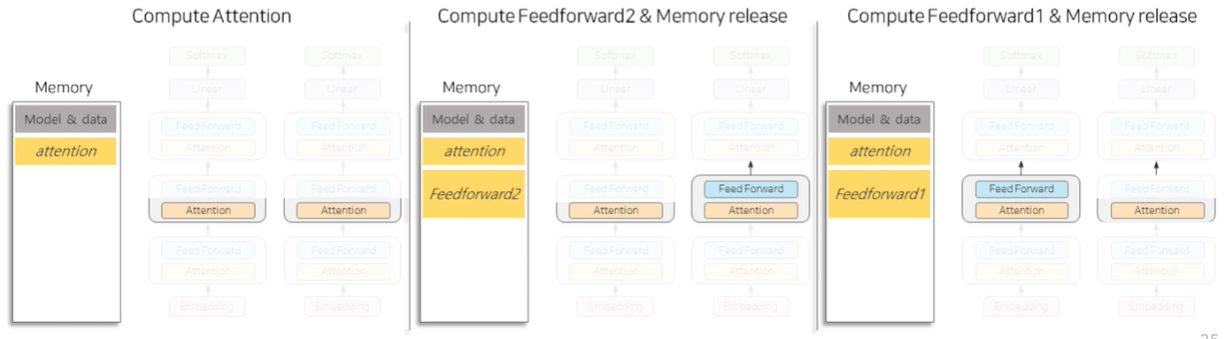 - Feedforward Layer 개선 : 계산하는 단위를 나누어 메모리를 사용할 수 있는 Chuncking 적용(모델넓이)