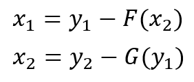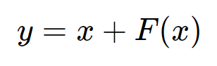 위의 식처럼 기존의 계산 블록은 입력 x를 이용해 출력 y를 구하는 구조. 반대로 출력 y를 이용해 입력 x는 구할 수 없음. 즉 역계산이 불가.