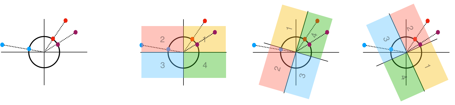 - 임의의 각도만큼 구면을 회전 (위 그림에서는 이해를 위해 사분면을 회전함)