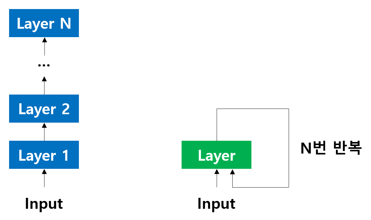 - ALBERT 모델은 Original BERT처럼 Transformer를 일일이 쌓지 않고, 한개 층을 계속 반복하여 사용함. 때문에 파라미터 수를 절약할 수 있음. (1개 층을 사용하기 때문에 cross-layer parameter sharing이라는 이름이 붙음.)