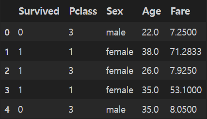 Sex 열에는 male과 female이 있는데 이를 이진 데이터로 만들어주기 위해 pandas의 get_dummies함수를 이용해 male = 1, female = 0으로 이진화시켜줍니다. 이를 데이터 프레임에 붙여줍니다.